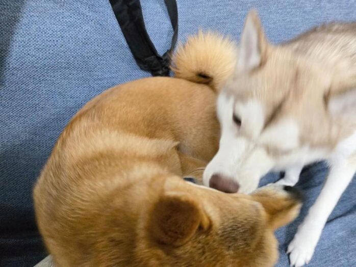 見てくれればわかるように、我が家のハスキーと柴犬は、誕生日がめちゃくちゃ近い。姉妹みたいなものだ。